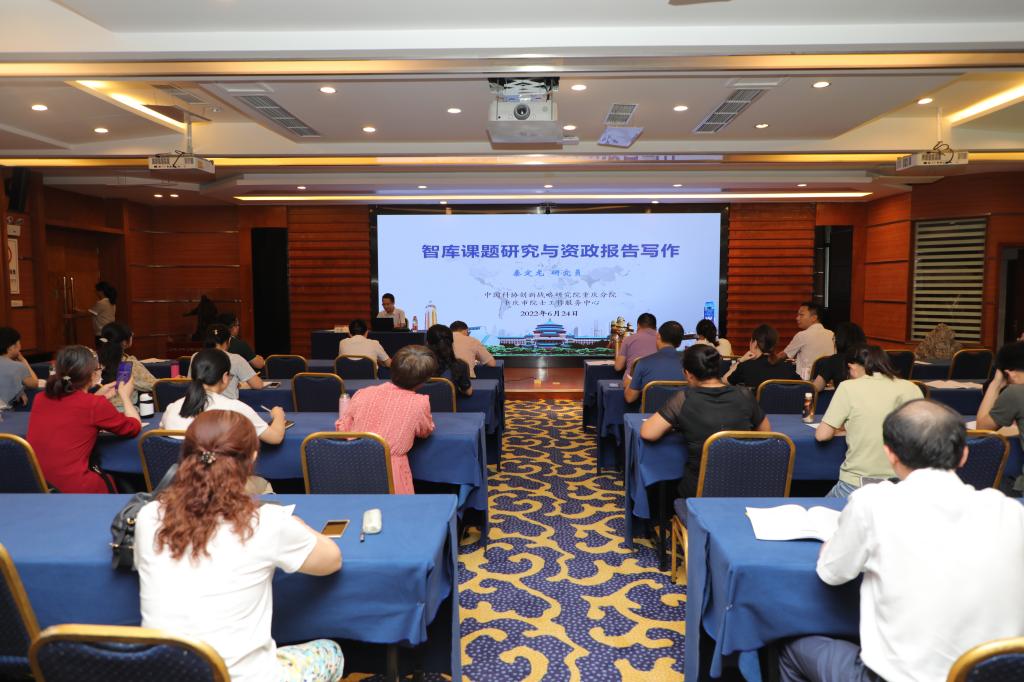 秦定龙强调了加强高校智库建设的意义,从学术研究和智库研究的区别和联系、智库研究的选题、调研方法等方面详细介绍了如何开展智库课题研究,以典型的决策咨询报告为例讲解了撰写资政报告的技巧。他向老师们介绍了科协主要通过组织课题研究、助力成果转化、共建科技智库以及举办学术交流等方式搭建智库研究平台的工作机制。