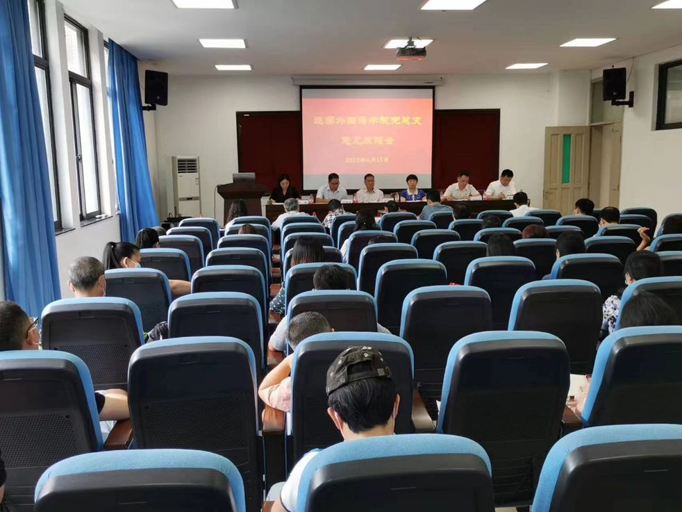 按照学校党委统一部署,6月15日下午,学校党委巡察组向外国语学院党总支反馈了巡察意见。校党委常委、副校长肖大志传达学校党委对巡察整改工作的要求并讲话。第二巡察组组长张乐乐反馈了巡察意见,外国语学院党总支书记邹莉做了表态发言。反馈会前,巡察组向外国语学院党总支书记进行了反馈。校党委常委、组织部部长马维嘉,巡察办主任范登龙,巡察组相关同志,外国语学院全体教职工参加了反馈会议。