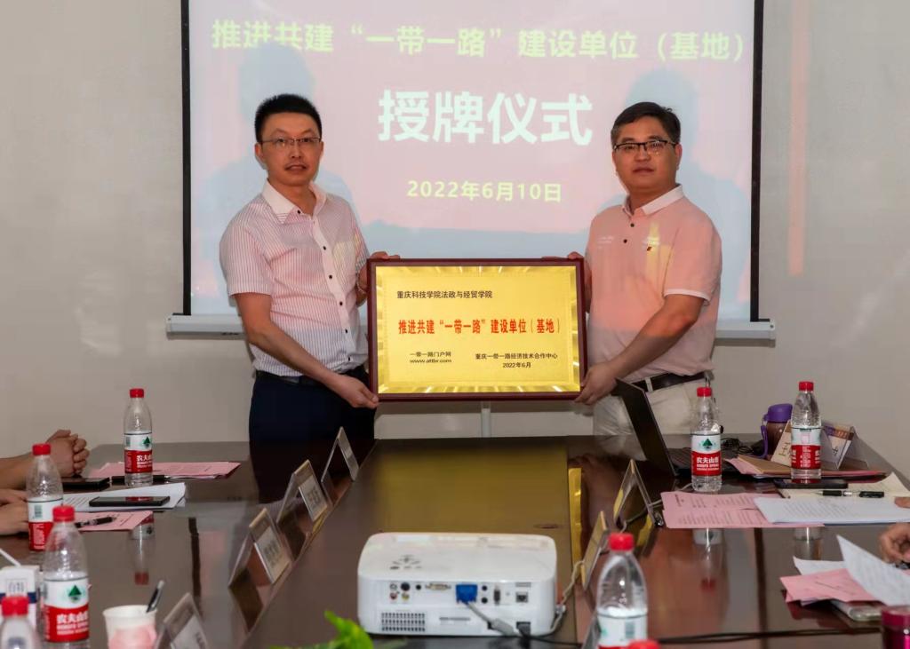 研讨会上,杜小东为法政与经贸学院 “推进共建‘一带一路’建设单位(基地)” 授牌。法政与经贸学院副院长杨文芳介绍校情、院情。经济学系主任、国家级一流专业建设专业——国际经济与贸易专业负责人王唯薇介绍国际经济与贸易专业推进融入“一带一路”教育行动计划,杨贵中教授介绍国际商务专业硕士概况及与参会专家、机构的合作思路。