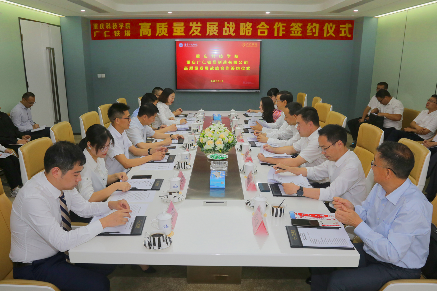 6月10日上午,党委书记黎德龙,校长赵明阶带队走访重庆广怀铁塔制造有限公司,双方签署了战略合作协议和研究生工作站建设协议,张丰、曹政钦、李孟洁、王琪辉四名教师与企业签订了博士后进站协议。北碚区区委常委、组织部部长邓美涛,重庆人力资源和社会保障局专技处处长易君,北碚区人力资源和社会保障局党组书记、局长冯昊应邀出席。副书记、副校长施金良,副校长肖大志,以及党政办、人事处、研究生处、合作与发展处、科研处、电气工程学院、建筑工程学院负责人陪同参加。