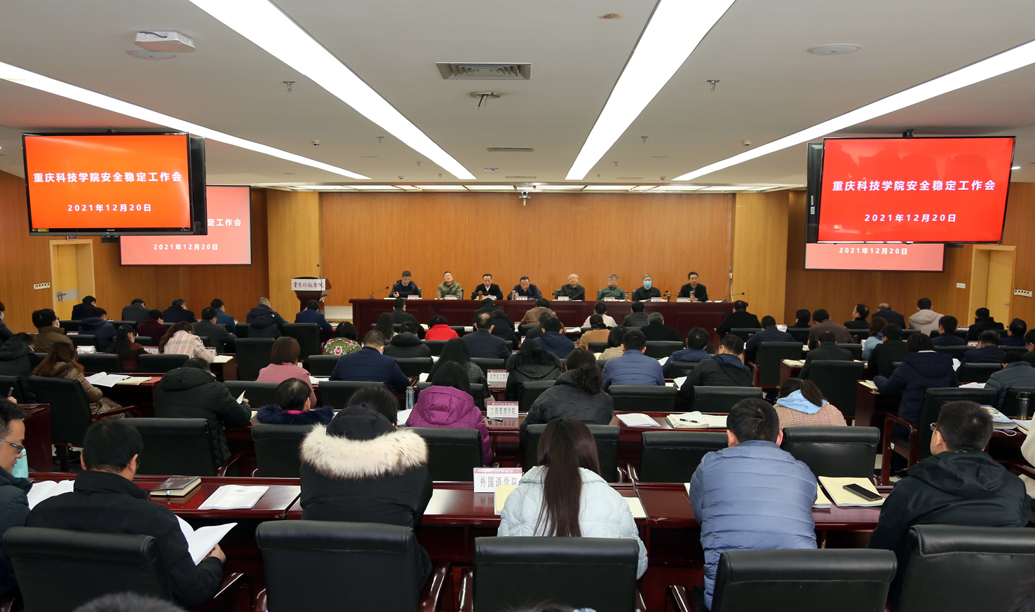 党委书记黎德龙在讲话中指出,今年是“十四五”开局之年,也是学校改革发展的关键期,年末岁尾要重视安全保障工作,各单位要进一步提高政治站位,压实工作责任,对各类突发事件做到“早排查、早发现、早引导、早处置”。一是加强宣传教育。各单位和部门要召开专门会议,引导师生平安、祥和、有意义地欢度元旦和春节,确保师生安全,自觉维护社会和谐稳定。二是开展安全隐患排查整改。各单位要严格落实安稳责任“分片包干”要求,把安全“记在心中,扛在肩上”,全面细致地对所管理和使用的重点区域、重要场所进行安全大检查,做及时整改消除隐患。三是严格落实应急值守制度。坚持学校主要领导、相关分管领导、各部门领导的值班值守制度,各值班人员务必坚守岗位,保持信息畅通。四是密切关注学生心理健康。要密切关注学生心理健康,实施“一生一案”“点对点”的心理健康服务,积极开展研判、诊断和排查工作。五是切实强化重点人员管控。要组织开展矛盾纠纷大排查,对影响学校稳定安全的问题逐一明确解决的措施、时限、具体责任部门和责任人,确保各项工作措施落到实处。六是抓好常态化疫情防控工作。保卫部继续落实严而有度的门岗管理措施,各总支、各单位做好对师生离渝的审批工作,及时掌握师生行程动态,教育引导师生增强社会责任意识和安全防护意识,全力维护师生生命安全和身体健康。