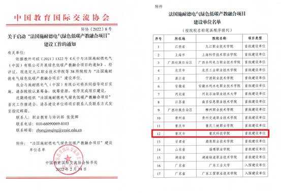 近日,中国教育国际交流协会下发《关于启动“法国施耐德电气绿色低碳产教融合项目”建设工作的通知》。经评议,选定了全国38所院校为项目建设单位,米兰为15所首批建设单位之一。