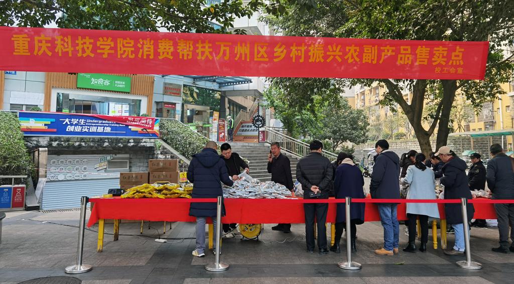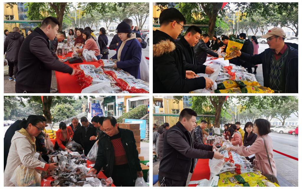12月8日、9日,学校和园食堂门口人头攒动,热闹非凡,由学校工会组织的万州区穰利农业专业合作社到校现场售卖农副产品活动正在举行。