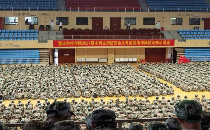 新生军训期间,学校面向全体新生开展一次系统的安全知识讲座,包含治安、交通、消防等多个方面。通过专业人士现场的安全知识讲解及案例分析,警醒新生对安全防护的关注,帮助新生具备常见的安全知识,提升新生的安全意识。