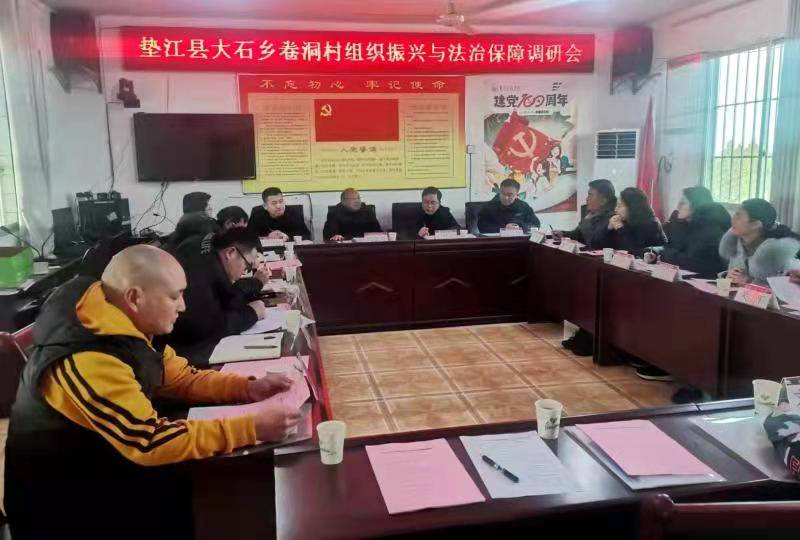 1月11日下午,由马克思主义学院副院长倪先敏、乡村振兴研究团队负责人何志武教授带队,马克思主义学院10余名思政课教师前往垫江县大石乡卷洞村和大石村,开展组织振兴与法治保障调研。调研会在垫江县大石乡卷洞村村委会会议室举行。大石乡驻乡工作队队长、重庆科技学院副校长刘上海参加会议并讲话。卷洞村驻村工作队队长、第一书记高论主持会议。