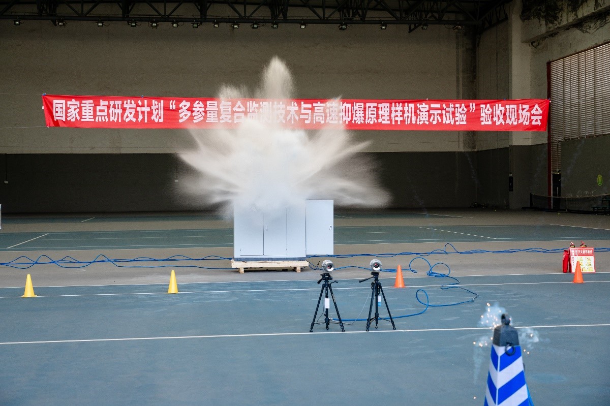 会上,专题负责人王文和教授汇报了“多参量复合监测预警技术及高速抑爆技术原理样机演示实验大纲”,专家组观摩了模拟机库油气高速抑爆原理样机和多参量复合监测预警技术演示实验。经过质询,专家组一致认为,试验大纲涵盖了任务书设定的参数指标,现场演示环境条件符合大型民航机库应用要求,实现了大型机库油气泄漏多参量复合监测预警、智能识别爆炸信号和高速抑爆效果。“多参量复合监测预警技术及高速抑爆技术原理样机演示试验”的成功验收,为后续国家重点研发计划专题的验收奠定了良好基础。