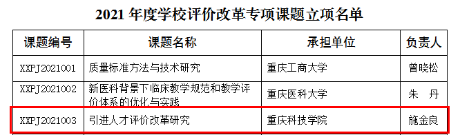 近日,重庆市教育评估院发布《关于公布2021年度学校评价改革专项课题立项的通知》,米兰申报的《重庆科技学院引进人才评价改革研究》获批立项,这是米兰继2021年度重庆市教育评价改革试点单位成功立项后,获批的第二个重庆市关于教育评价改革的项目。