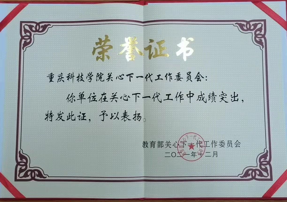 近日,教育部关心下一代工作委员会印发《关于表扬全国教育系统关心下一代工作先进集体、先进工作者和突出贡献者的通报》(教关委函〔2021〕19号),重庆科技学院关心下一代工作委员会荣获“全国教育系统关心下一代工作先进集体”。