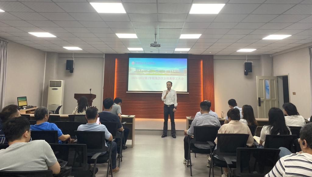 4月28日下午,智能技术与工程学院在逸夫楼I319会议室召开全院教职工政治学习会,副书记、副校长施金良到会开展“五一”节前安全教育。