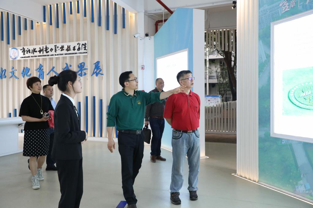 座谈交流结束后,吴松一行在王顺克的陪同下,实地考察了重庆水利电力职业技术学院的百米水文化长廊、职工心理驿站、教师发展中心、职工书屋、刘小平劳模创新工作室、幼儿发展实训中心、若水课程思政教学研究示范中心、建筑工程学院、大数据学院、应急指挥中心、水文化育人成果展等二级单位以及校园特色文化。
