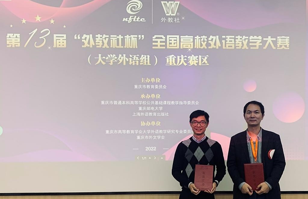 11月6日,第十三届“外教社杯”全国高校外语教学大赛(大学外语组)重庆赛区在重庆邮电大学落下帷幕。经过两天的激烈角逐,米兰外国语学院教师秦川获视听说组一等奖,肖隽逸获综合组二等奖。
