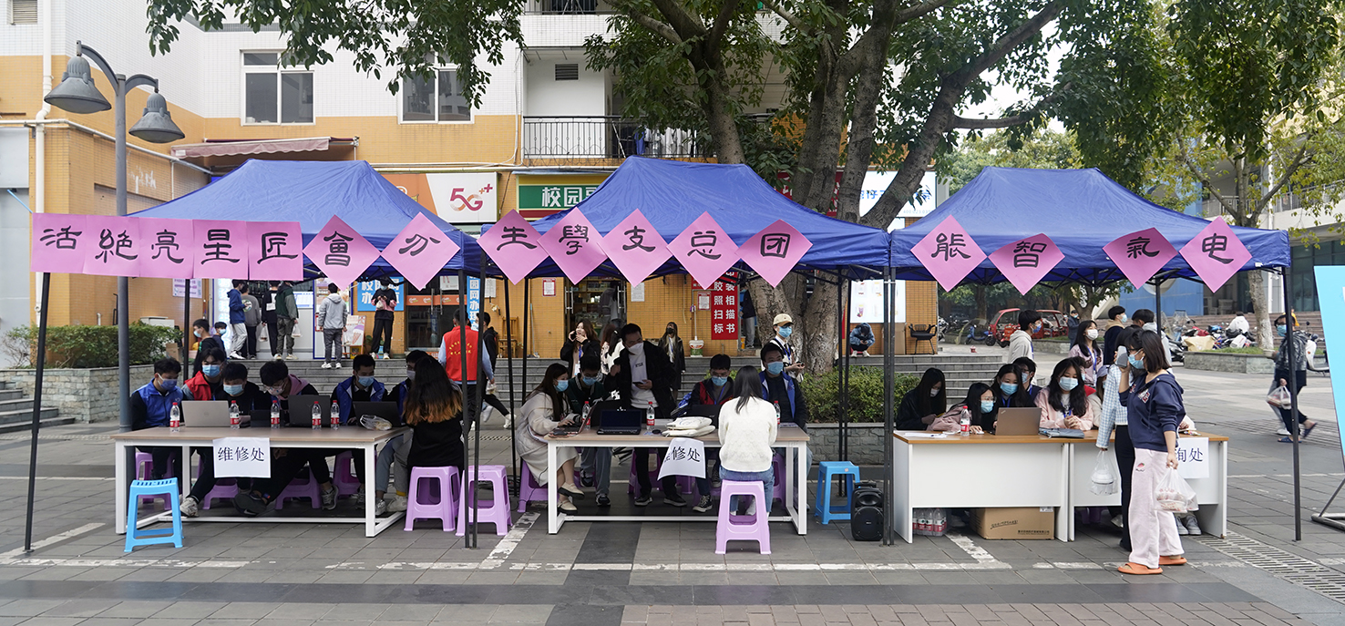 为及时解决在校师生因电脑、手机发生故障带来的学习生活不便,11月18日,电气工程学院、智能技术与工程学院的广大学生志愿者积极响应学校倡议,在团总支和学生会组织下,组成了由30余名志愿者组成的电脑手机义务维修服务队,在容园、和园食堂前空旷地带,为在校师生提供电脑手机等智能设备的问题咨询与检修服务,及时把守望相助、团结友爱的温暖服务送到师生身边。