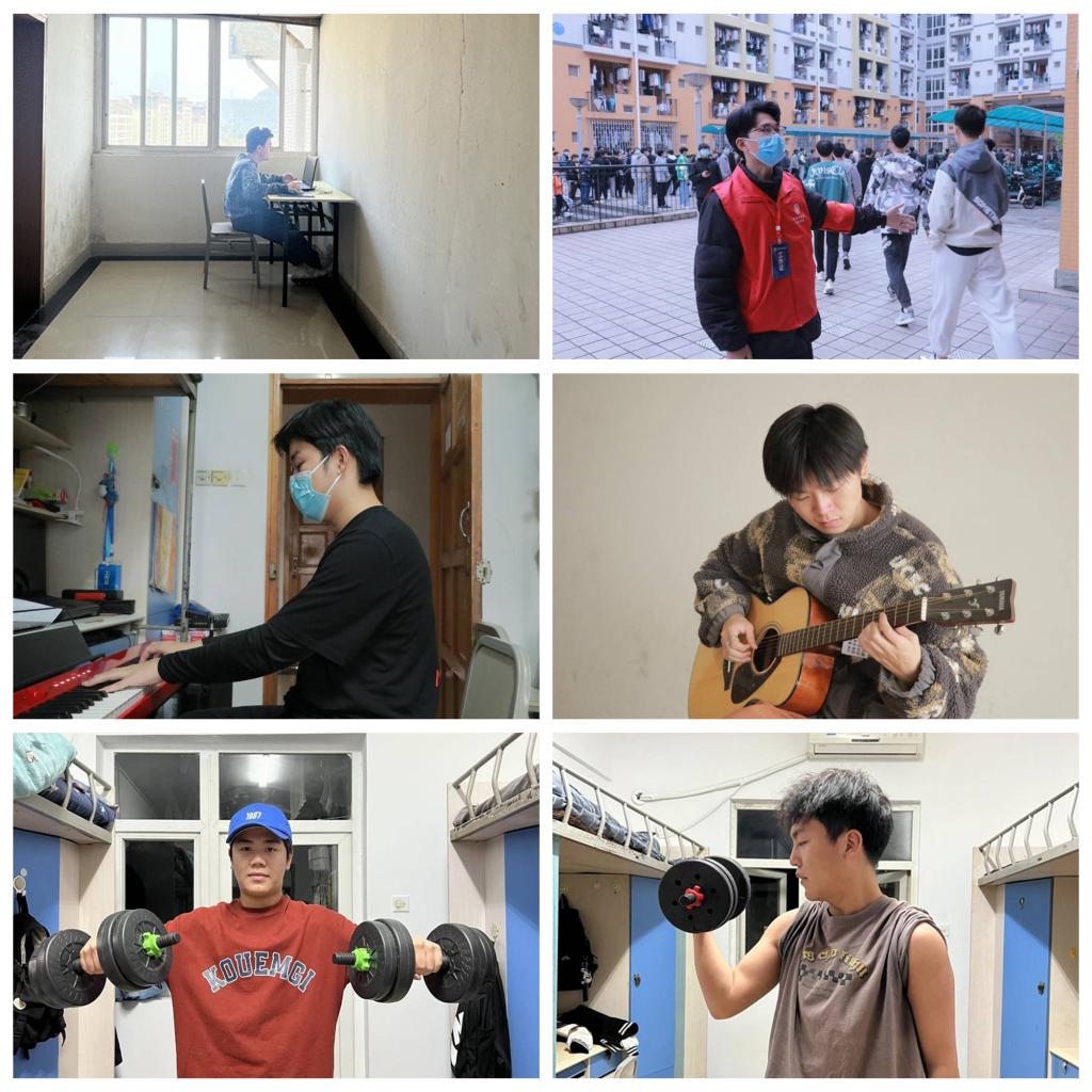 当前全市疫情形势严峻复杂,学校疫情防控工作正处于关键期。他们是学生党员,以自己的无私奉献彰显党员先进本色,让党旗高高飘扬在疫情防控最前沿、最紧处。他们是学生志愿者,用实际行动展现当代大学生的责任与担当,将自己扎根到每个重要岗位。当然还有这样一些特别的同学,为了在疫情期间保持健康的身体和良好的心态,积极在寝室锻炼身体,用健康的体魄,迎战疫情。还有同学组建起了一支简单的乐队,用跳动的音符驱散疫情带来的焦虑不安。