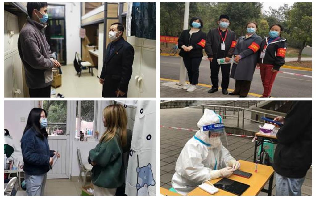闻令而动,下沉一线。自学校外防输入防疫阻击战打响以来,党支部先后选派3名党员入驻校园,与先后入驻校园的其他5名党员教师一起,组成了学院入驻校园应急工作组,全天候24小时奋战在学院疫情防控第一线。他们把落实防疫要求的力度与关爱学生的温度结合起来,认真细致做好学生每日健康状态数据摸排统计,积极承担风险排查、应急处理以及健康监测组织、秩序维护等繁重任务,全力以赴筑牢防疫防护墙。他们经常走访学生宿舍、研究生工作室、考研复习室等,深入了解同学们思想身心状况与学习生活情况,积极回应同学们的心声诉求,及时帮助学生解决学习生活中面临的实际问题和困难,努力提升同学们的安全感和幸福感。