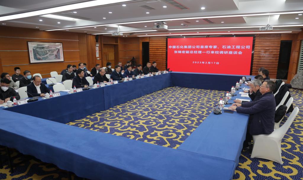 2月17日下午,中国石化集团公司首席专家、石油工程公司副总经理张锦宏一行来校调研座谈,座谈会在办公楼105会议室举行。西南石油工程公司副总经理杜征鸿,石油工程公司井控高级专家王文刚,石油工程公司钻井工程管理部副经理任立伟,西南石油工程钻井院副院长黄明,校长赵明阶以及相关职能部门和学院主要负责人及教授、博士代表参加会议,副校长刘上海主持会议。