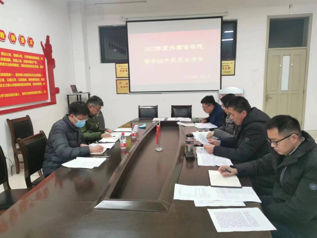 2月20日上午,外国语学院在厚德楼H206会议室召开2022年度领导班子民主生活会。副校长吴松列席会议并指导,学院全体班子成员参加会议,学校纪检监察相关工作人员列席会议。