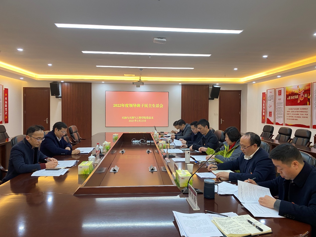 2月23日上午,石油与天然气工程学院在笃行楼K434会议室召开2022年度领导班子民主生活会。学校党委副书记、校长赵明阶列席会议并指导点评,学院全体班子成员参加会议,学校党政办公室相关人员列席会议。会议由学院党总支书记谢家建主持。