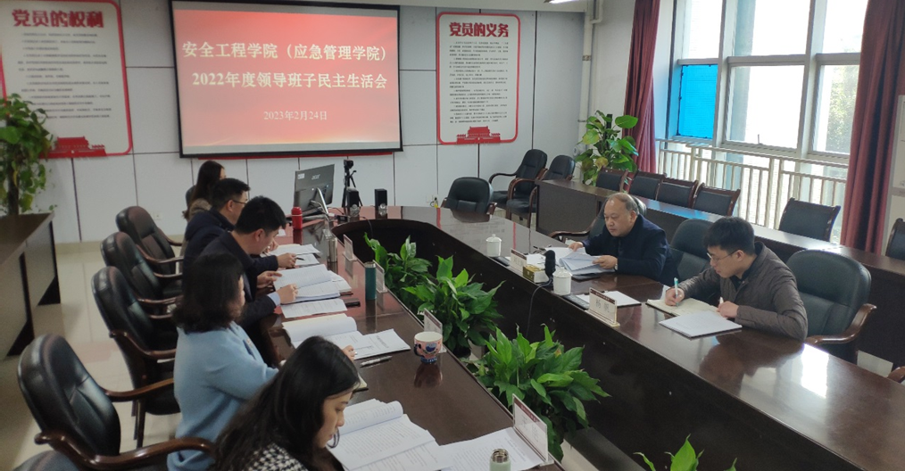 2月24日下午,安全工程学院(应急管理学院)在笃行楼312会议室召开2022年度领导班子民主生活会。校党委常委、副校长刘上海列席会议并指导点评。会议由学院党总支书记徐彦主持,学院班子成员全体成员参加。