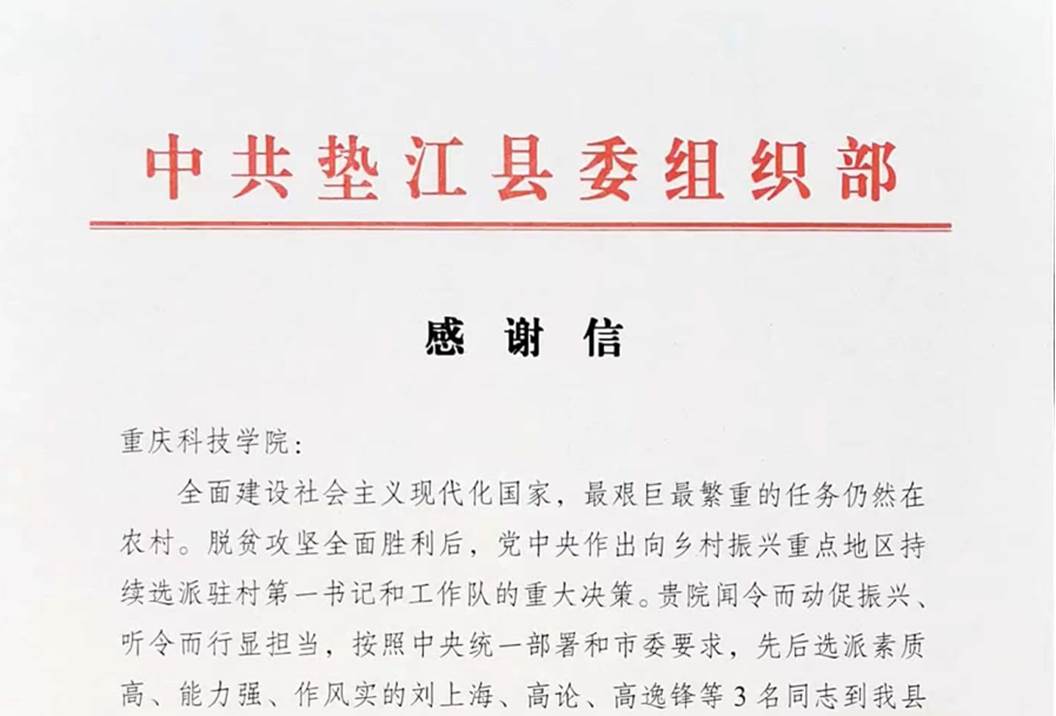 近日,中共垫江县委组织部致信米兰,对米兰积极投入乡村振兴工作并对米兰派驻工作的同志表示感谢。