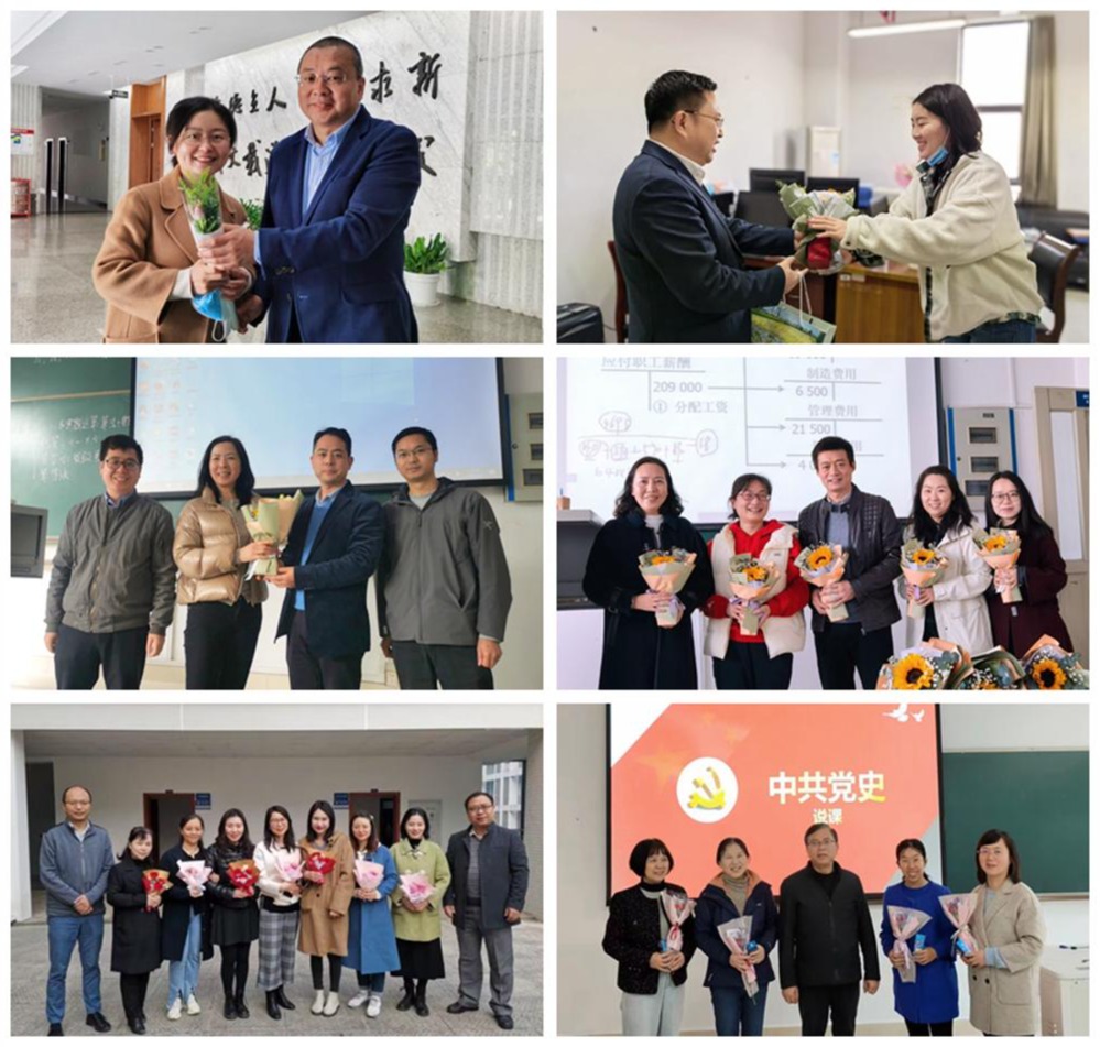 一枝鲜花,一份祝福。3月8日,学校开展了“一枝鲜花送讲台”活动,副校长吴松,校工会负责人,各学院党政负责人、分工会主席分别带队,把芬芳清香的鲜花送到坚守在教书育人岗位的女教师们手中,并送上诚挚的节日祝福。收到鲜花时,女老师们脸上都露出了开心的笑容。