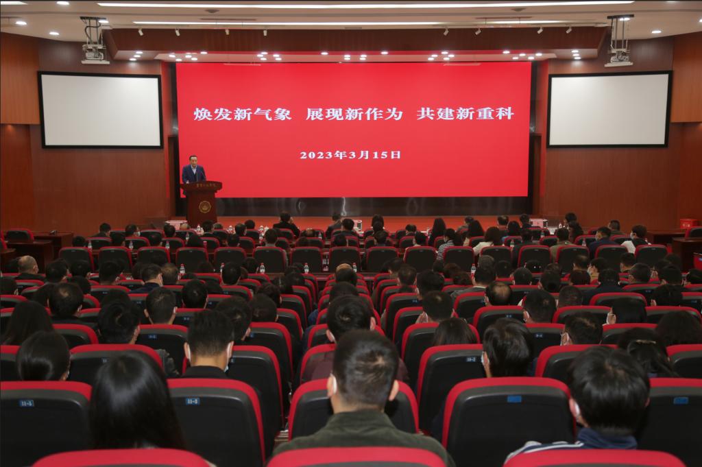 按照市委统一部署,3月15日下午,学校领导班子和领导干部2022年度考核总结述职和民主测评会在学术报告厅召开,市考核办专门派联络员市委教育工委组织干部处干部李歆、市社科院干部人事处干部刘佳鑫到会指导。会议由党委书记黎德龙主持。