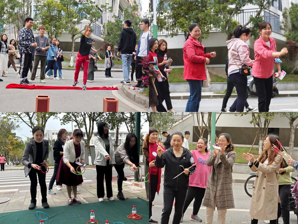 在各打卡点上,她们兴趣盎然地参加了套圈圈、投壶、丢沙包等游戏。老师们拿着箭,瞄准筒,用手比划着,每投中一个,就欢欣跳跃起来,乐在其中。校园里处处洋溢着欢乐的气氛,浩荡的健行队伍形成一道靓丽的风景线。