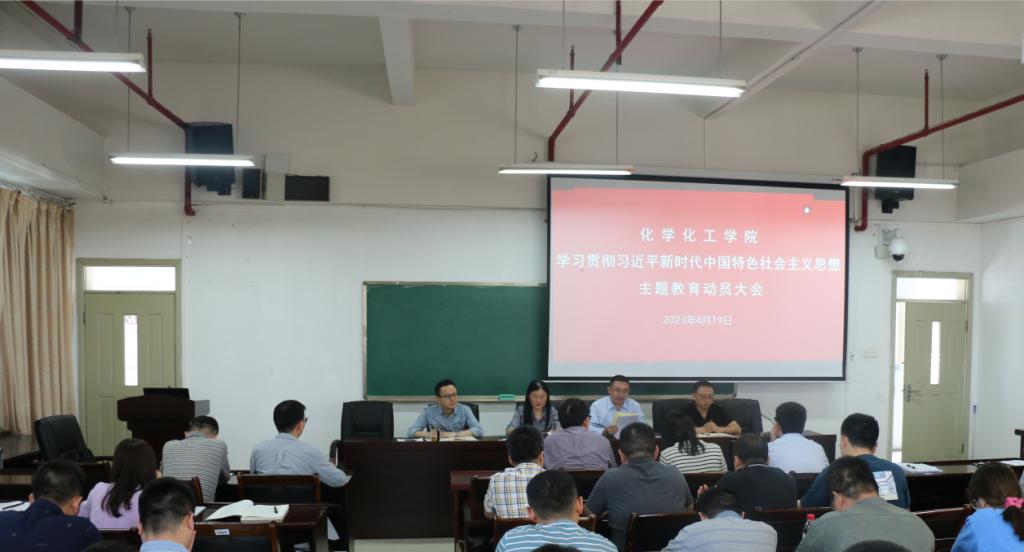 按照学校学习贯彻习近平新时代中国特色社会主义思想主题教育领导小组统一部署,4月19日下午,化学化工学院在笃行楼K1020会议室召开学习贯彻习近平新时代中国特色社会主义思想主题教育动员大会。学院全体师生党员参加了动员大会,会议由党总支书记张莉主持。