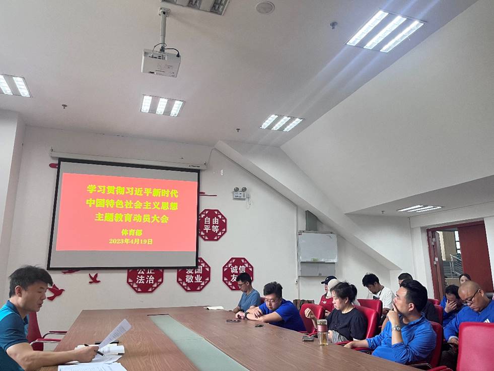 按照学校学习贯彻习近平新时代中国特色社会主义思想主题教育领导小组统一部署,4月19日上午,体育部党总支在体育馆T206会议室召开学习贯彻习近平新时代中国特色社会主义思想主题教育动员大会,体育部全体教职工参会,会议由党总支书记、部长朱海涛主持。