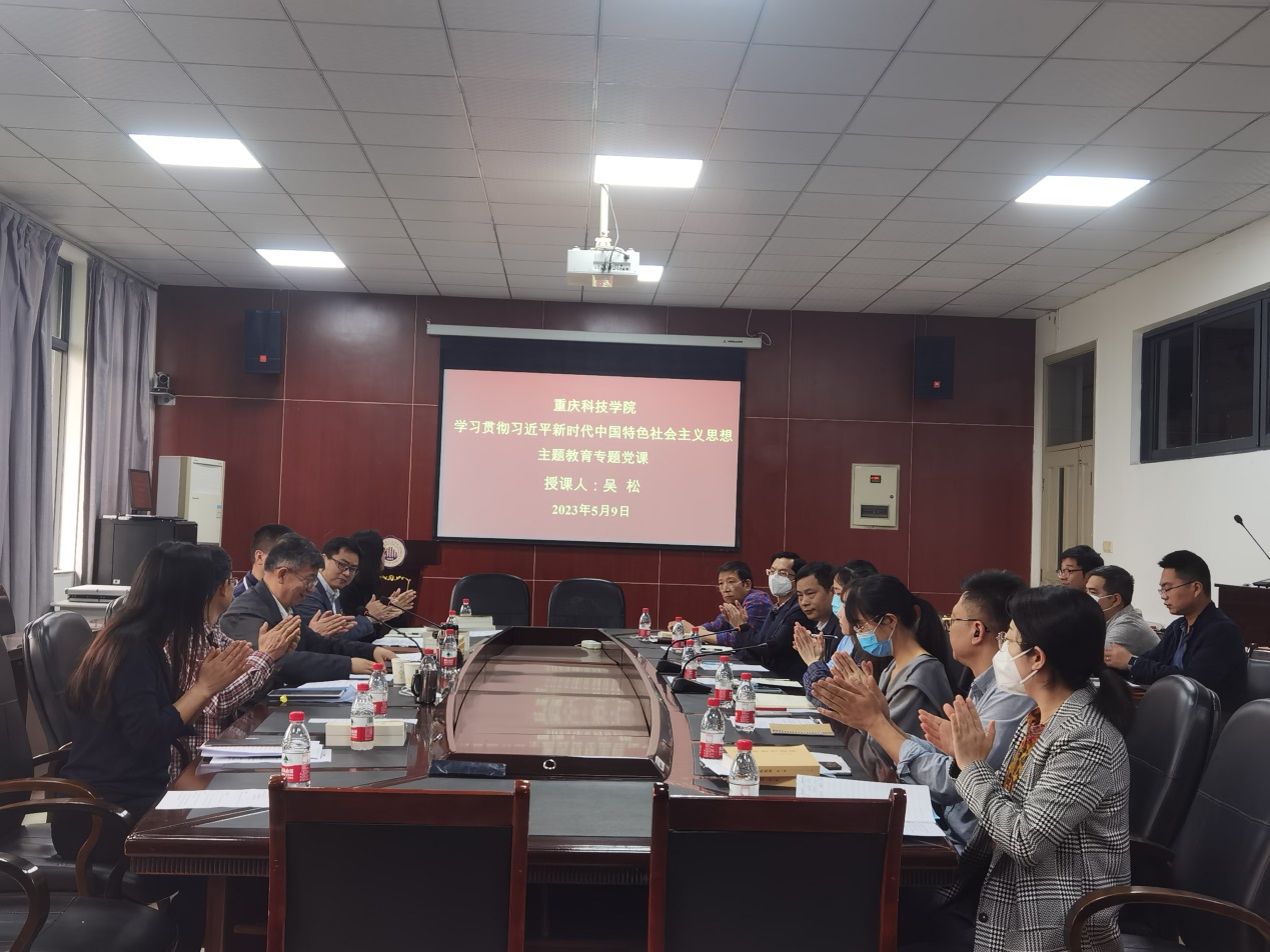 按照学校学习贯彻习近平新时代中国特色社会主义思想主题教育理论学习细化方案相关要求,5月9日下午,在厚德楼H512会议室,副校长吴松向外国语学院党总支、人文艺术学院党总支理论学习中心组(扩大)成员讲授主题教育专题党课。