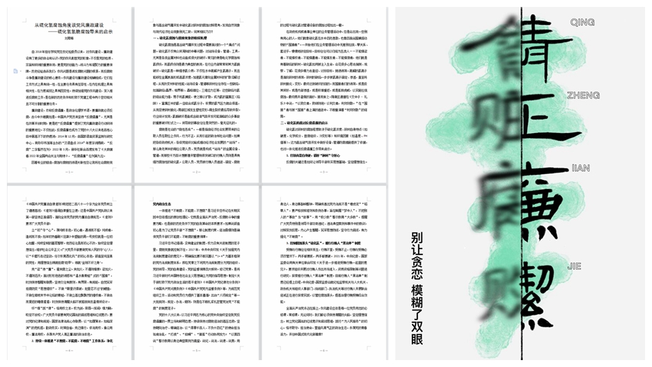 为深入学习贯彻党的二十大精神,贯彻落实党中央《关于加强新时代廉洁文化建设的意见》,引导学校干部师生进一步夯实清正廉洁思想根基、厚植廉洁奉公文化基础、培养廉洁自律意识、弘扬崇廉拒腐社会风尚,今年2月起,学校党委宣传部和纪检监察室联合,面向全校师生开展了廉洁教育作品征集评选活动。