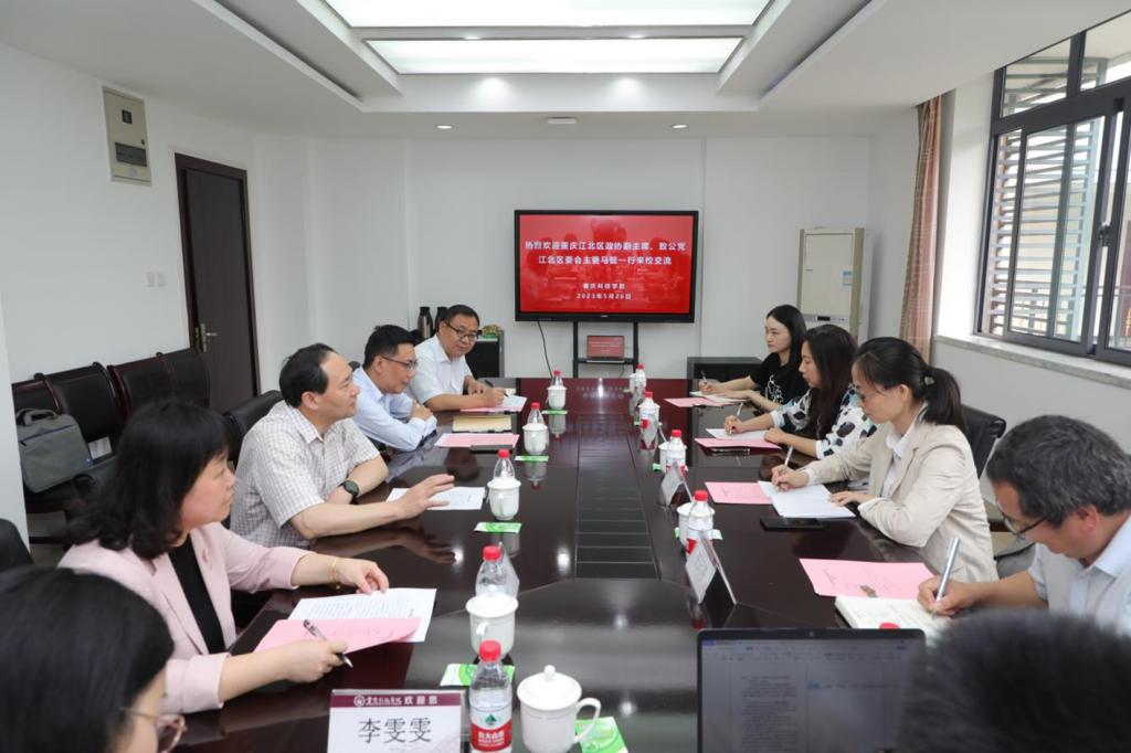 马懿介绍了江北区基本情况及科教研产融合情况,并就致公党江北区委成立二十年来发展情况及工作情况作简要介绍。期望双方进一步加强人才培养、务实合作,推动校地双方共助共赢。