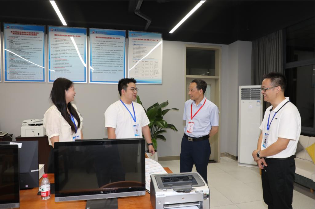在招生录取工作现场,黎德龙一行看望慰问了暑期奋战在招生录取一线的工作人员,对大家坚守岗位、辛勤付出表示感谢,提醒大家要注意劳逸结合。黎德龙详细了解了招生录取进展、各专业投档分数等情况,对招生工作取得的阶段性成果给予了充分肯定。