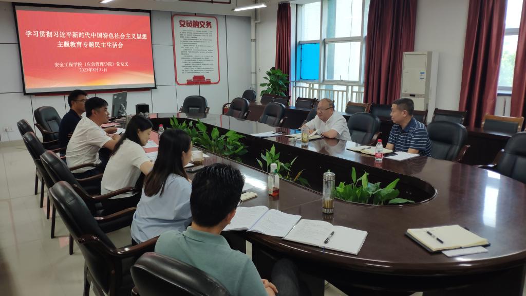 8月31日上午,安全工程学院(应急管理学院)在笃行楼312会议室召开学习贯彻习近平新时代中国特色社会主义思想主题教育专题民主生活会。副校长刘上海到会指导。会议由学院党总支书记王艳主持,学院班子全体成员参加,全体组织员列席。
