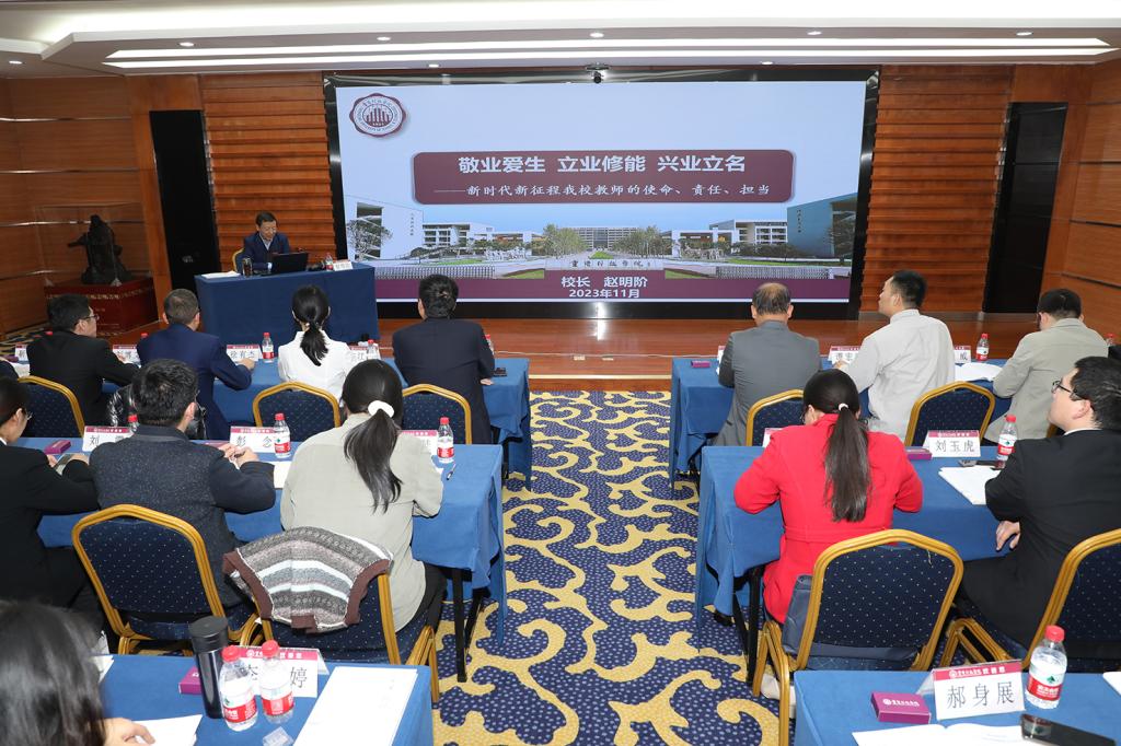 11月22日下午,学校党委副书记、校长赵明阶在办公楼105会议室为所有参训的2023年新入职的68名教师作了题为“敬业爱生 立业修能 兴业立名——新时代新征程米兰教师的使命、责任、担当”的专题报告。报告会由副校长刘上海主持。