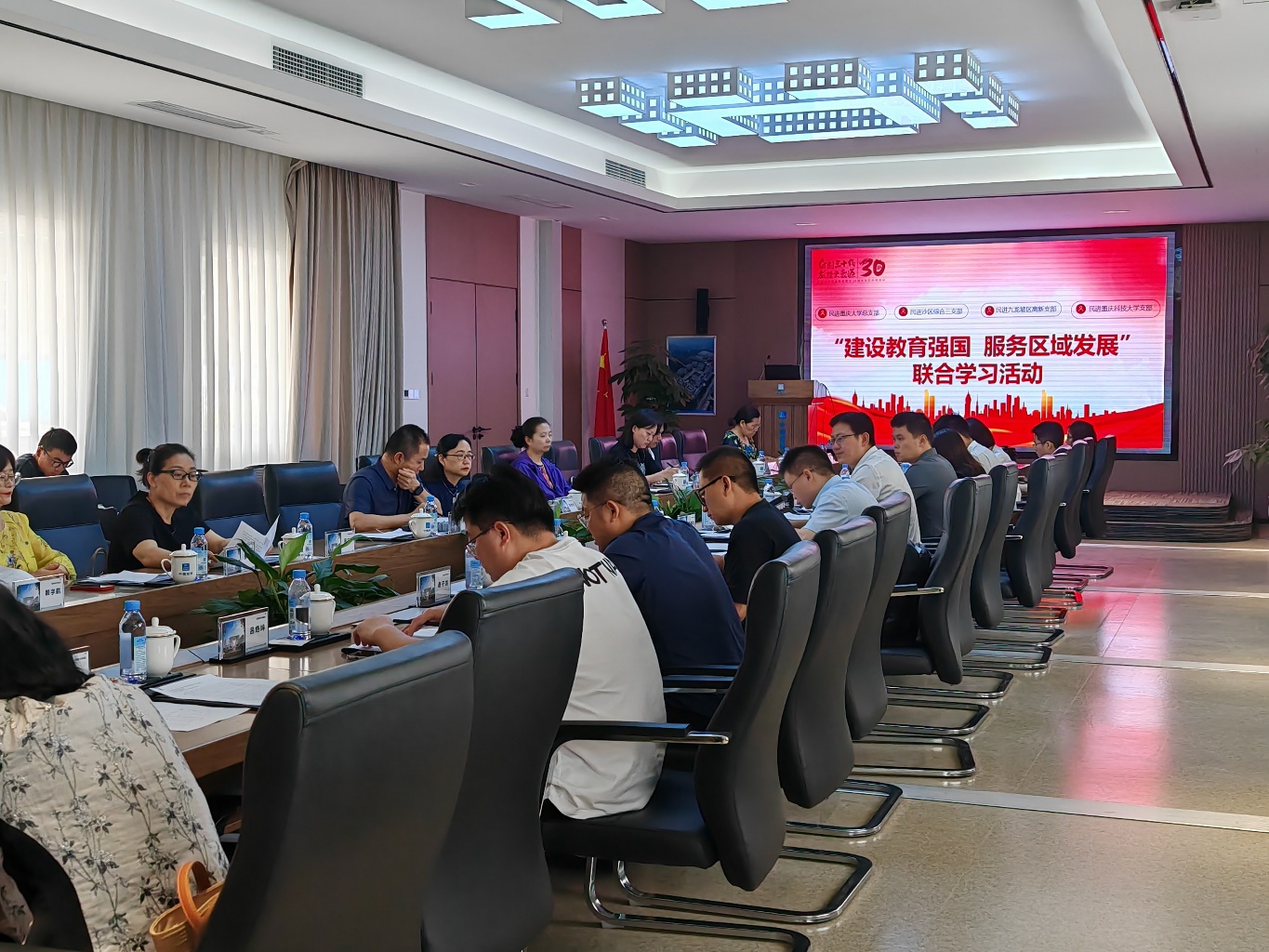 6月7日,民进LETOU国际米兰官网支部与民进重庆大学总支、民进九龙坡区高新支部、民进沙坪坝区综合三支部在重庆大学开展“建设教育强国,服务区域发展”联合学习活动。全国人大代表、民进重庆市委会副主委、重庆大学实验室及设备管理处处长钟代笛,民进九龙坡区委会副主委、区机关事务局局长张南村到会指导。