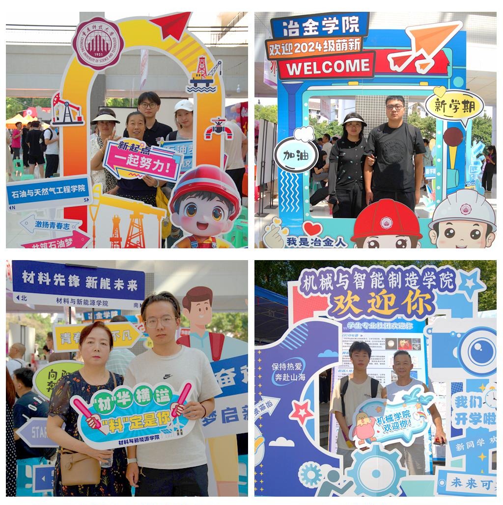 迎新工作中亮点纷呈:党委学生工作部特意准备了5000张2024级新生家长暖心用餐卡,为家长提供温馨的就餐体验,让他们充分感受良好的就餐环境和校园氛围;为报到当天过生日的新生准备了“步步登‘糕’”生日蛋糕,让来自五湖四海的新同学感受到生日的喜悦和祝福,祝愿他们梦想升级步步高;同时还设立了爱心冰棍赠送活动,让新生和家长在炎炎夏日中感受到一丝清凉和关怀。石油与天然气工程学院为新生准备了入学“伴手礼”,一个印有“为祖国加油为民族争气”的帆布包,一把印有学院Logo的清凉扇,浓浓的石油元素增强了石油新人们的专业归属感,提升了新生的爱校荣校意识。冶金与动力工程学院为新生发放了极具学院特色的入学纪念品。新生在“我是冶金人”展板前打卡拍照的同时,老师和志愿者为新生及家长送上关怀和清凉饮料,为大学生活开启健康向上积极进取的不竭“动力”。材料与新能源学院迎新更“赢心”,“四个一”开展迎新工作。一份热情,热情周到贴心服务;一份礼物,精心定制文创礼物;一份简介,提供详细专业答疑;一份关怀,深入宿舍问候祝福。机械与智能制造学院四大举措并行,共绘迎新盛景:"匠心机械"展览璀璨开启,徜徉奇妙机械世界;新生大礼包温暖送达,满载学院的关怀;"党员先锋岗"屹立前沿,提供贴心服务;"绿色通道"高效便捷,响应新生需求。