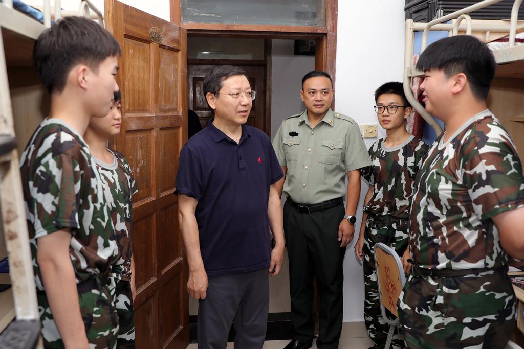 走访过程中,赵明阶亲切地与同学们交流,详细询问了他们的军训情况和对新的生活学习环境适应情况,了解大家对学校伙食、学习生活设施的意见和建议。赵明阶表示,学校高度重视同学们的生活与学习环境,将不断提升服务保障水平,确保大家能够安心学习、快乐生活。同时,赵明阶勉励同学们要合理规划大学学习生活,珍惜时光,积极适应军训节奏,在艰苦的训练中磨炼意志、锻炼体魄。他还特别叮嘱大家注意用电安全,保持寝室卫生,共同营造和谐安全的生活环境。