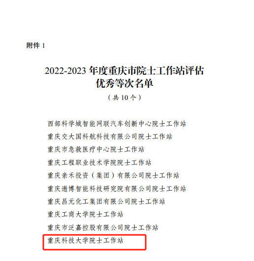 学校院士工作站于2013年建站,在学校党委、行政的大力支持下,先后引进了都有为、邹志刚、苏义脑、周守为、杨永斌等院士进站工作,为学校石油与天然气、冶金与材料等学科与专业的建设、科研团队培养、大项目大成果培育以及科研平台的布局等出谋划策,绩效显著,曾被评为中国科协示范院士专家工作站,多次被评为重庆市优秀院士工作站。