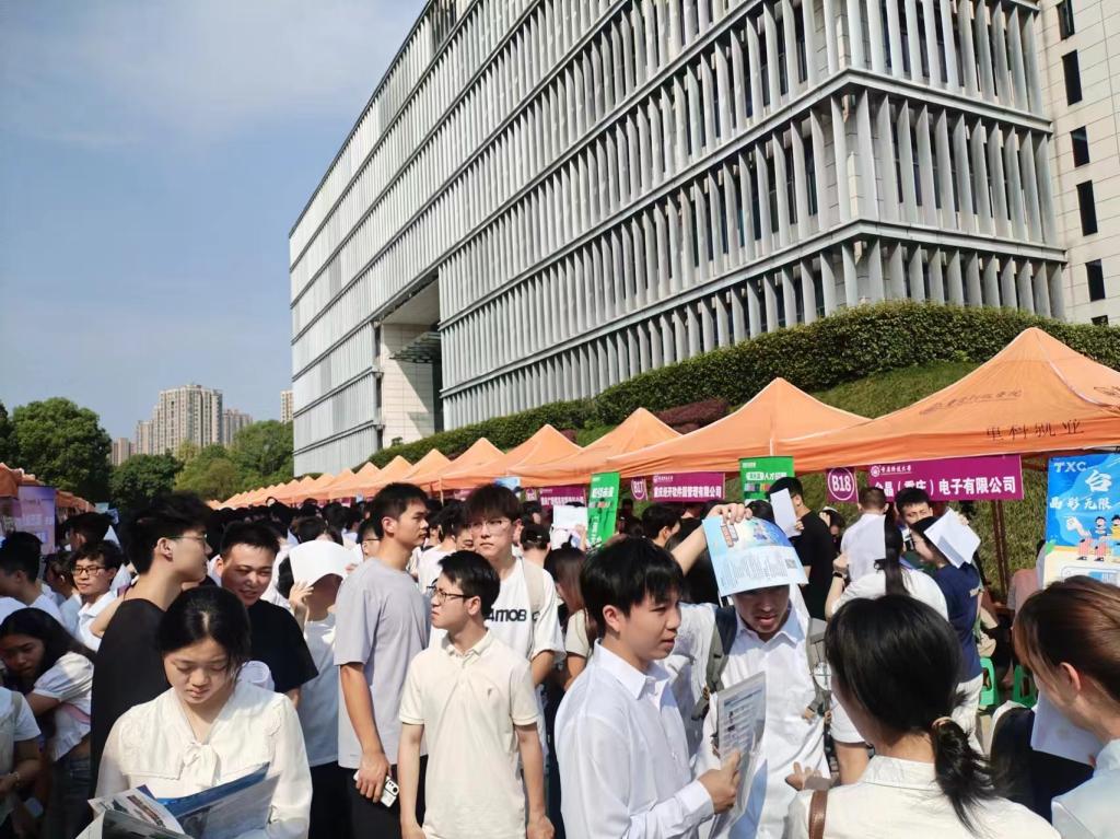 9月27日,学校在图书馆南侧广场举办首场2025届毕业生“职等你来”双选会。中国石油化工股份有限公司镇海炼化分公司、中国化学工程第七建设有限公司、重庆顺博铝合金股份有限公司、蓝黛科技集团股份有限公司等91家用人单位参会招聘,提供就业岗位4695个。双选会现场秩序井然、气氛热烈,毕业生积极投递简历、参加面试,学院领导、专业教师、毕业班辅导员、就业专干等现场指导推荐,参会毕业生超过2000人次,达成就业意向500余人。