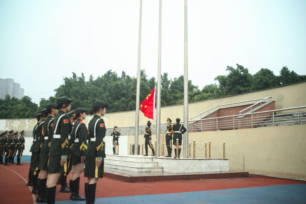 迎着晨曦的霞光,国旗护卫队昂首阔步,迈着铿锵有力的步伐走向升旗台。伴着雄壮的国歌声,鲜艳的五星红旗冉冉升起,全体同学怀着崇敬的心情向国旗行注目礼,高唱中华人民共和国国歌,向伟大的祖国致以节日的祝福和崇高的敬意,祝愿祖国母亲山河永昌,繁荣富强。