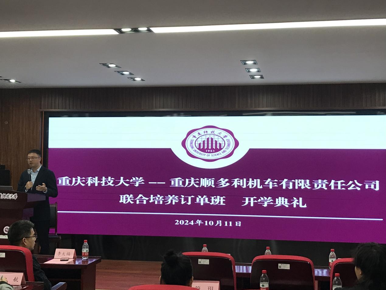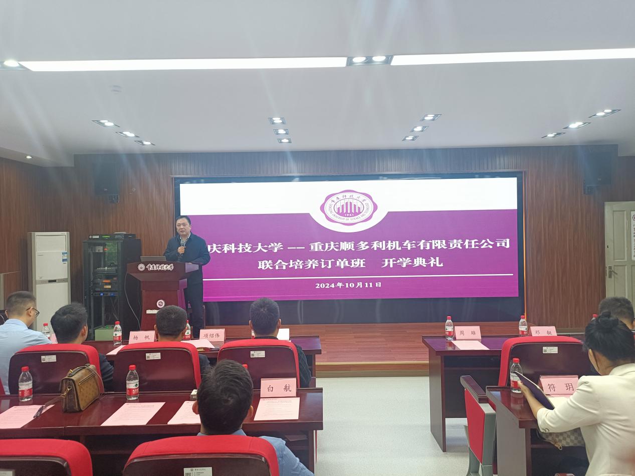 米兰与重庆顺多利机车有限责任公司共同举办的第一期联合培养订单班开学典礼于10月11日在学校举行,校企合作、共同培养高素质应用型人才开启新篇章。重庆顺多利机车有限责任公司轮值CEO项绍伟、副总经理杨帆、营销部经理余阳、质管部经理杨品、人力资源部副经理段红,副校长周雄、招就处处长邓艇、创新创业学院相关负责人、工作人员及相关学院辅导员参加活动。