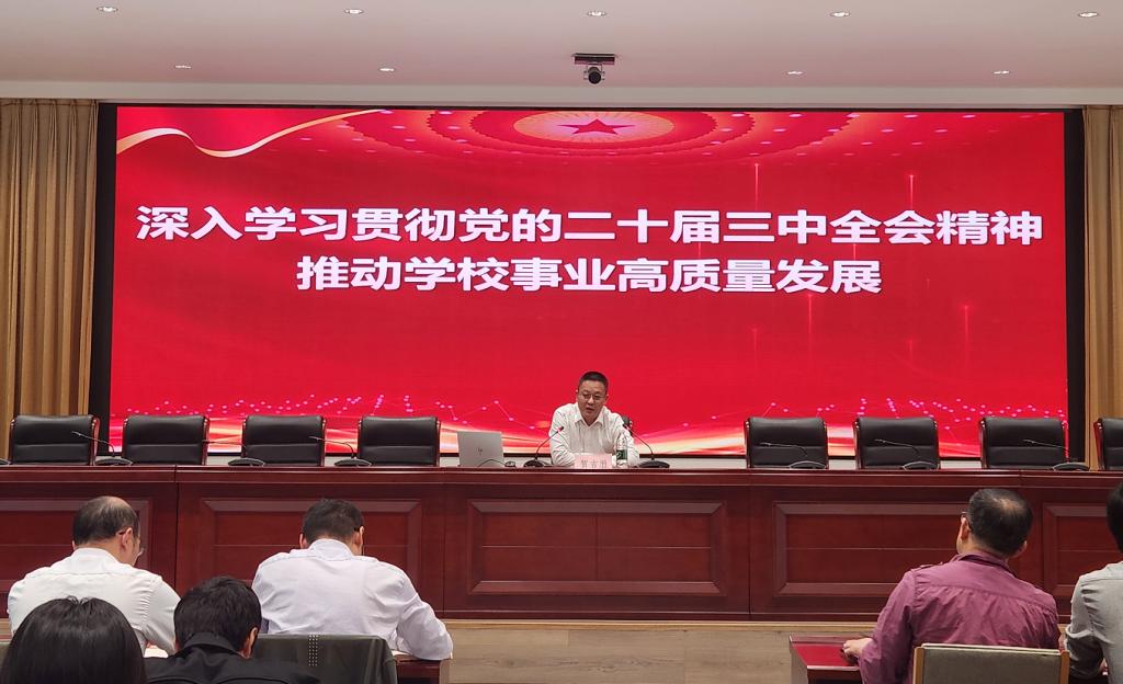 贺吉胜强调,全体师生要统一思想,凝聚共识,充分认识党的二十届三中全会召开的重大意义,准确理解进一步全面深化改革的总目标,深刻把握新时代进一步全面深化改革的重大成就、重大原则、重大举措,切实推动全会精神落实落细、见行见效;要坚持高位部署,统筹推进,深刻认识进一步全面深化改革的重要性和必要性,砥砺奋进努力书写改革新篇章;要坚持实事求是,深化教育综合改革,紧密联系教育教学实践,学深悟透用活,激发教育发展活力,扎实推进确保各项工作行稳致远;要坚持聚焦主业,在实干苦干巧干中推动事业发展,锚定改革奋斗总目标,深学细照笃行,结合学院优势特色,形成推动高质量发展的强大动力,依托国家工程研究中心等平台,加快科技攻关,阔步新征程。