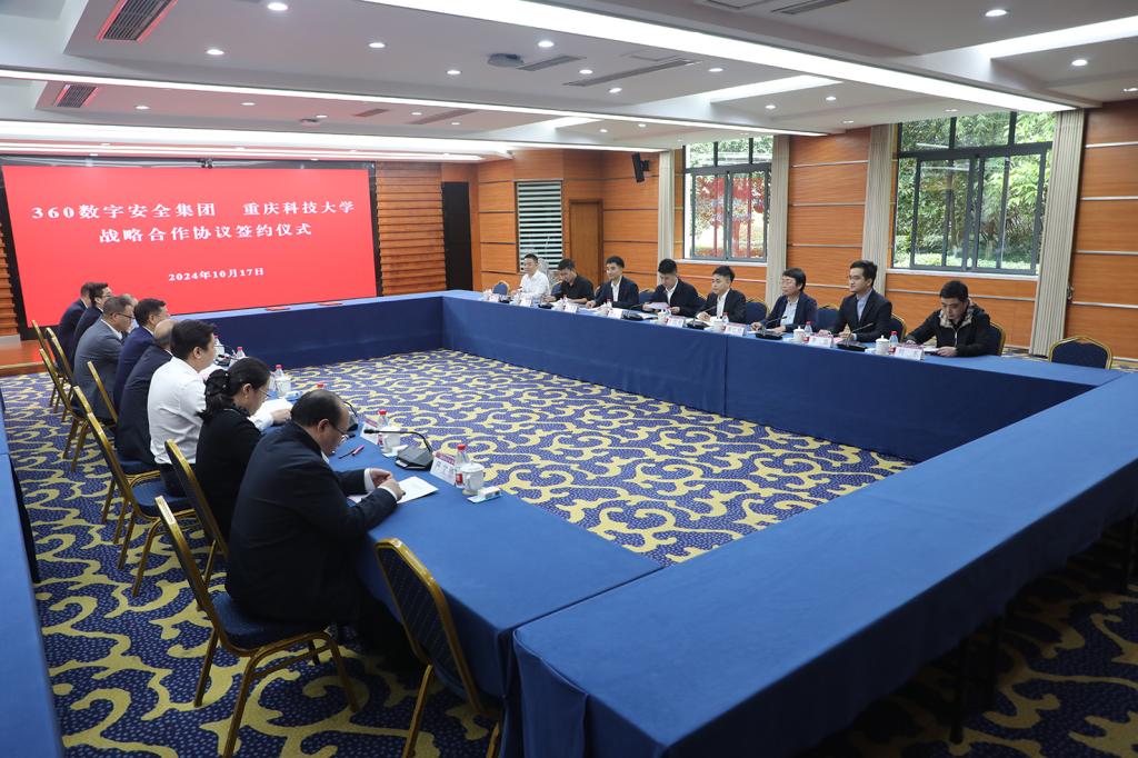 10月17日下午,米兰与360数字安全集团在学校办公楼105会议室签订战略合作协议。校长赵明阶,副校长刘上海,各相关部门、二级学院(研究院)负责人,360数字安全集团总裁胡振泉及相关人员出席活动。
