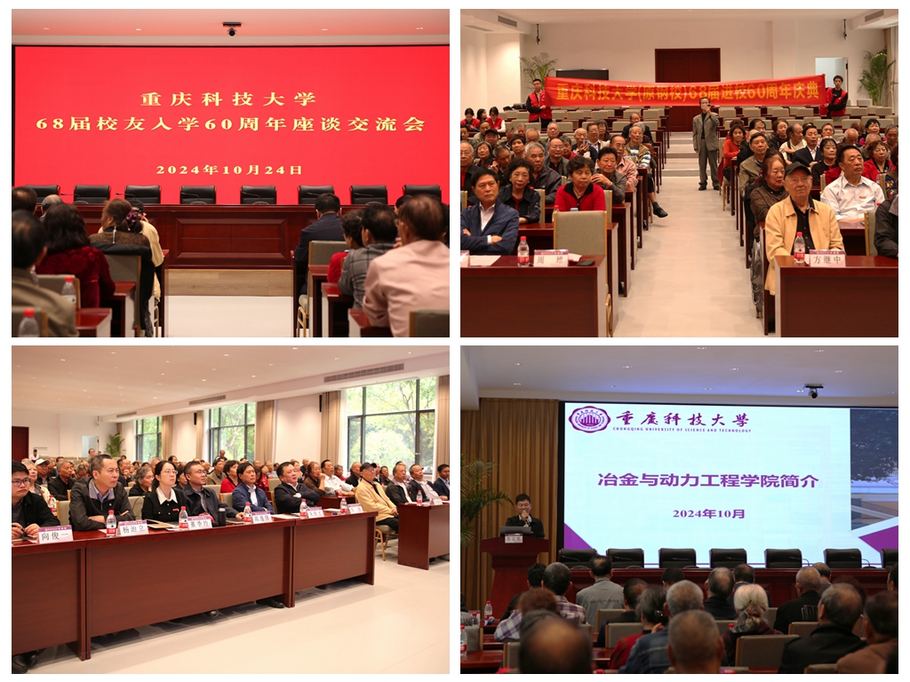 上午10时,校友交流座谈会在教学主楼B117会议室召开,副校长周雄、重庆工业高等专科学校副校长方继中、原重庆科技学院副校长朱新才、原重庆科技学院副校长雷亚,67、68、69届校友代表102人,以及学校校友会秘书长、冶金与动力工程学院班子成员和教师代表等共计120余人参加了会议。会议由校友会秘书长邱正阳主持。