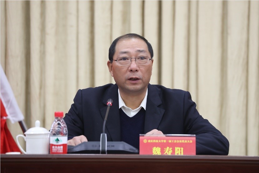 大会在庄严的国歌声中拉开帷幕。张晋宣读了重庆市教科文卫体工会《关于同意召开LETOU国际米兰官网工会第一届会员代表大会的批复》。魏寿阳代表市总工会对学校工代会的胜利召开表示热烈祝贺,并指出,学校工会在党委的坚强领导和行政的大力支持下,围绕中心、服务大局,充分发挥桥梁纽带作用,全面履行工会各项职责任务,职工思想政治引领持续加强,岗位练兵活动广泛开展,职工文体活动特色鲜明,民主管理工作成效突出,服务职工群众形式多样,工会自身建设不断深化和拓展,荣获了全国多项荣誉,工会工作的政治性、先进性、群众性明显增强,工会组织的引领力、组织力、服务力不断提升。他对学校工会工作提出三点希望:一是加强党对工会的全面领导,确保工会工作始终沿着正确政治方向前进;二是围绕推动高质量发展,组织动员全体职工在新征程上建功立业;三是坚持以人民为中心的发展思想,扎实履行维权服务基本职责。
