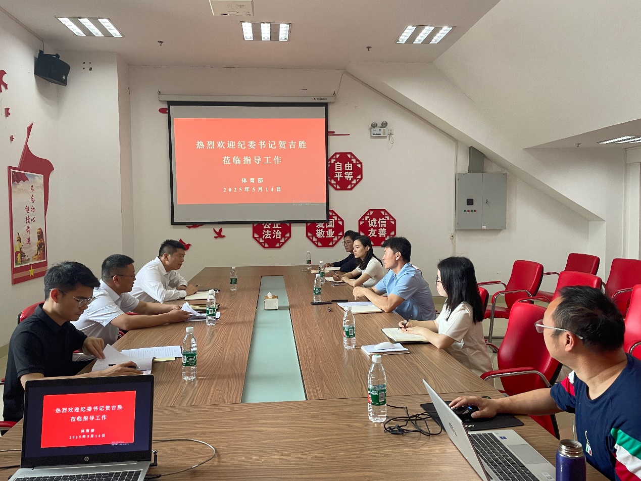 5月14日上午,为推进深入贯彻中央八项规定精神学习教育,学校党委常委、纪委书记、监察专员贺吉胜一行赴体育部开展调研并指导工作,体育部班子成员、科级干部、党支部书记、教研室主任参加了座谈交流。