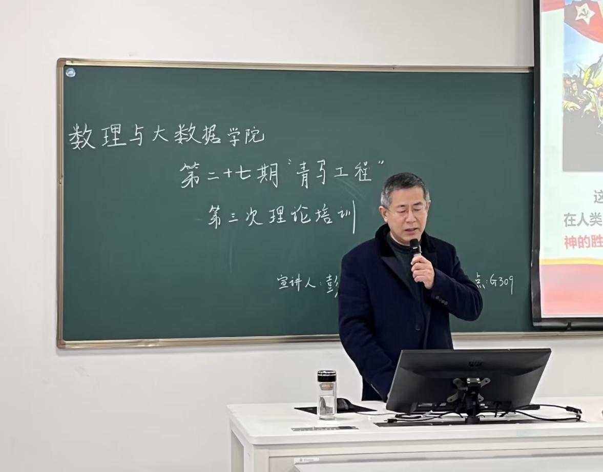 1月4日上午,数理与大数据学院在厚德楼G309教室开展第二十七期“青年马克思主义者培养工程”第三次理论培训。本次培训邀请学院院长彭军教授作为主讲嘉宾,第二十七期“青马”培训班学员全员参加。