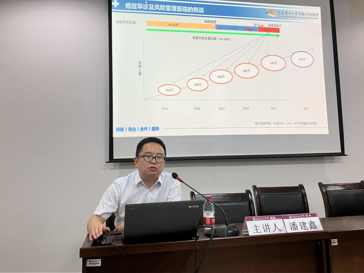 为进一步加强教职工健康意识,切实关爱教职工身体健康,校工会开展2024年“关爱教职工 健康校园行”系列讲座活动,4月3日下午,第一场讲座在教职工活动中心316会议室举行,讲座围绕肿瘤早查早筛开展,特邀重庆医科大学附属大学城医院健康管理中心副主任潘建鑫进行健康知识普及。各分工会50余名教职工参加了此次讲座,讲座由工会副主席涂玲玲主持。