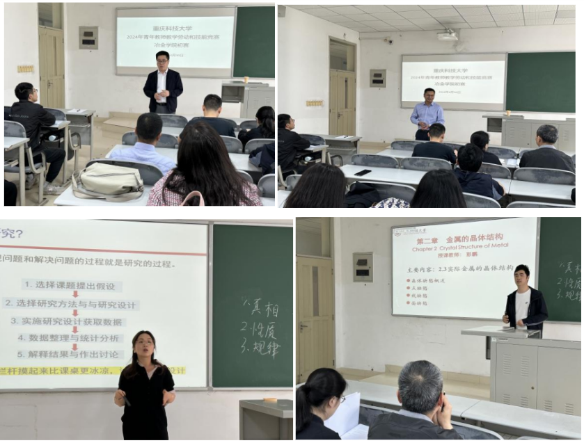 4月30日下午,冶金与材料工程学院在博学楼E302教室举行2024年青年教师教学劳动和技能竞赛。来自学院4个系的8名青年教师参加竞赛。学院党总支副书记、分工会主席伍静及全院40岁以下青年教师观摩竞赛。竞赛由副院长秦跃林主持。