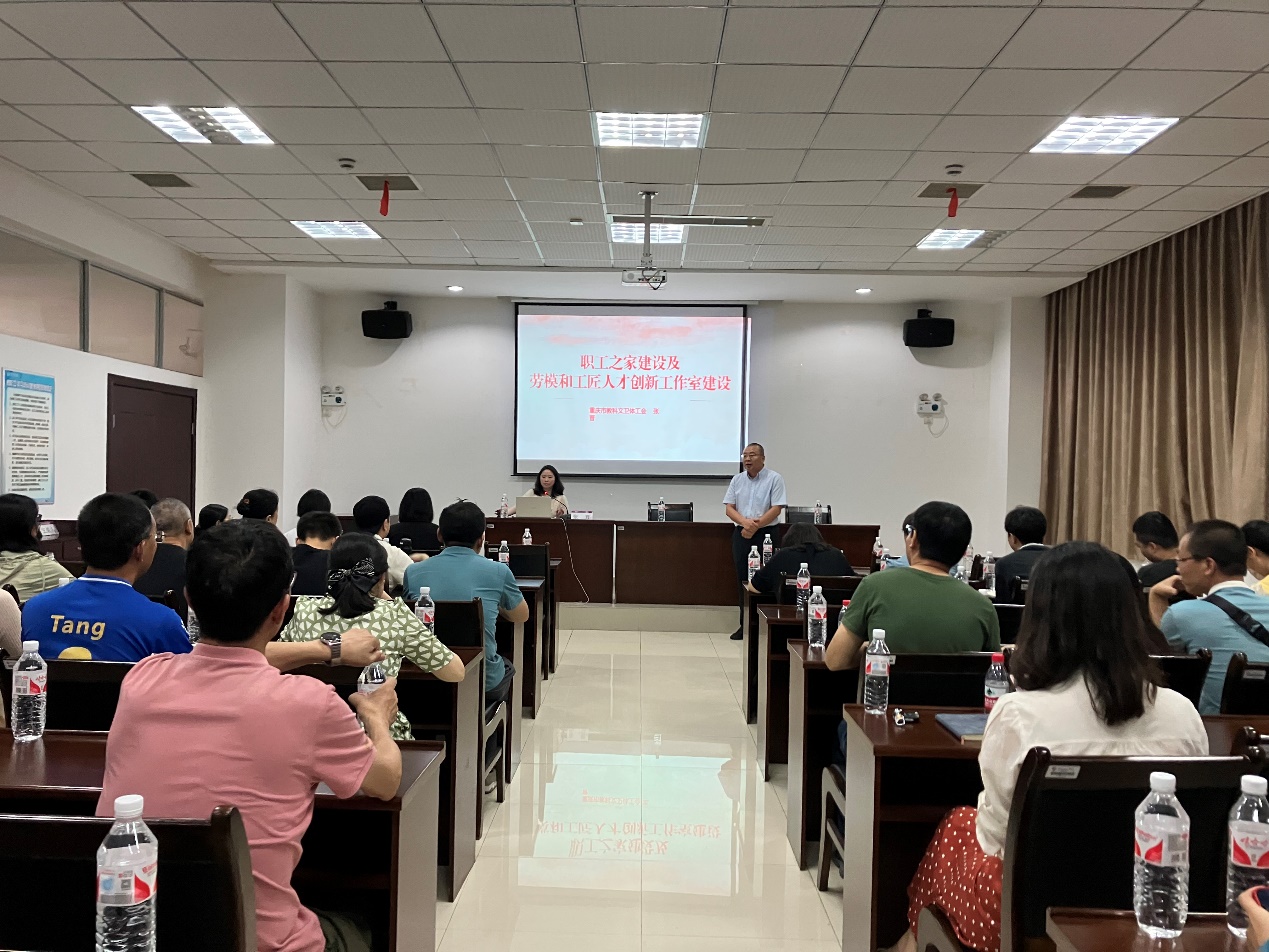 为进一步提升工会干部政治理论水平和业务素质能力,强化工会组织建设、队伍建设,推动工会工作创新发展,6月21日上午,校工会邀请重庆市教科文卫体工会常务副主席张晋在工会316培训室为学校工会干部作了“职工之家建设及劳模和工匠人才创新工作室建设”的专题培训。校工会常务副主席陈勇主持会议,各分工会主席、分工会委员、分工会小组长等90余人参加了培训。
